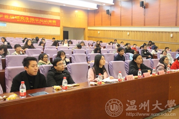 为了弘扬国学、传承经典,12月16日晚上,由2138cn太阳集团古天乐党委研究生工作部和2138cn太阳集团古天乐主办、2138cn太阳集团古天乐研究生会承办的首届研究生国学知识竞赛决赛在育英图书馆二楼报告厅如期举行。此次比赛邀请到研究生辅导员申业磊、武晓岚以及中国史专业陈鸿超老师担任决赛评委,来自全校各个学院的部分研究生参与并到场观看。
