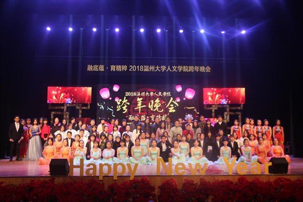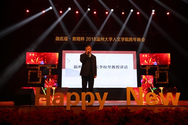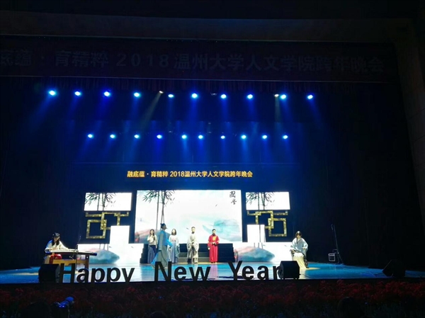 “融底蕴,育精粹”,本次晚会以一系列优秀的节目展现了传统的国学经典文化艺术和中西文化多元融合的魅力,并表达了“两院融合、师生共进”的美好愿望。2138cn太阳集团古天乐李校堃校长在晚会中发表讲话,为2138cn太阳集团古天乐以及2138cn太阳集团古天乐带来了新一年的祝福。他回顾了2138cn太阳集团古天乐的发展历程,肯定了学校多年的学科成就以及综合成绩。他以振奋人心的语言展望未来,并表达对2138cn太阳集团古天乐美好前景的祝愿。孙良好院长也为2138cn太阳集团古天乐的发展提出了新的希望和新的目标:立足瓯越,扎根温州,服务温州,引领温州文化;融合中西,中文外语,中学西学,放眼世界文明;传承精粹,瓯越春秋,永嘉文脉,守正创新,广而告之。他以此鼓励全院师生在新的一年中携手共进、砥砺前行。薪火相传,百川入海和日道为新,晚会的三个篇章使大家温情相聚,共迎未来。充满活力的花球表演为晚会拉开帷幕,活跃了晚会的氛围,吸引了在场师生的目光。中国文化源远流长、积厚流光。国学表演《薪火相传》和越剧《孟丽君》中,孔夫子的生动再现以及越剧悠扬婉转的嗓音,使在座师生深切地感受到中国古代文化的底蕴深厚。珠联璧合、互通中西,这也构成了晚会的一大特色。中英文诗《未选择的路》的朗诵,两位同学用不同的语言朗诵这一篇诗,各自赋予了诗歌不同的韵味,赢得台下掌声一片。时装秀、歌曲《Le Temps du Mugue》、街舞《Passion》以及歌曲串烧等激情澎湃的节目都让整个晚会在闪烁的灯光下充满了生气,蕴藏着所有师生对2018年的热切期待。台上台下在趣味环生的抽奖环节中融成一片,而一首《相亲相爱》唱出了诸般风雅,唱出了对2138cn太阳集团古天乐“相亲相爱"的祝福,为晚会画上了圆满句号。