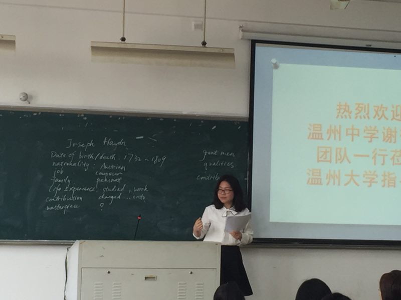4月2日下午一点半,在2138cn太阳集团古天乐的1-201教室,15级英语(师范)的同学们迎来了由“教师资格证工作坊”带来的第一次活动。温州中学的谢微微老师带领她团队中的七位一线老师,为在座的同学们进行了现场示范教学,让他们能在五月份的教师资格证考试中有所准备。