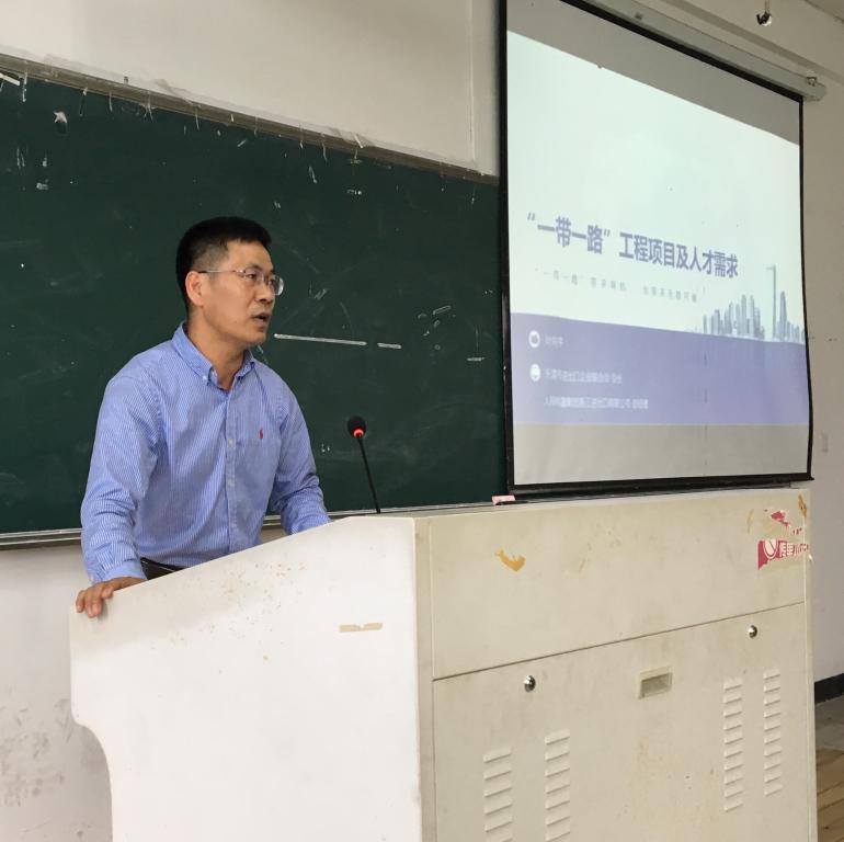 2018 年4月4日下午,2138cn太阳集团古天乐翻译系举行专业见习(二)讲座,讲座主题为“一带一路”工程及企业人才需求,15英语3、4班及16级、17级翻译专业同学参加了本次讲座。