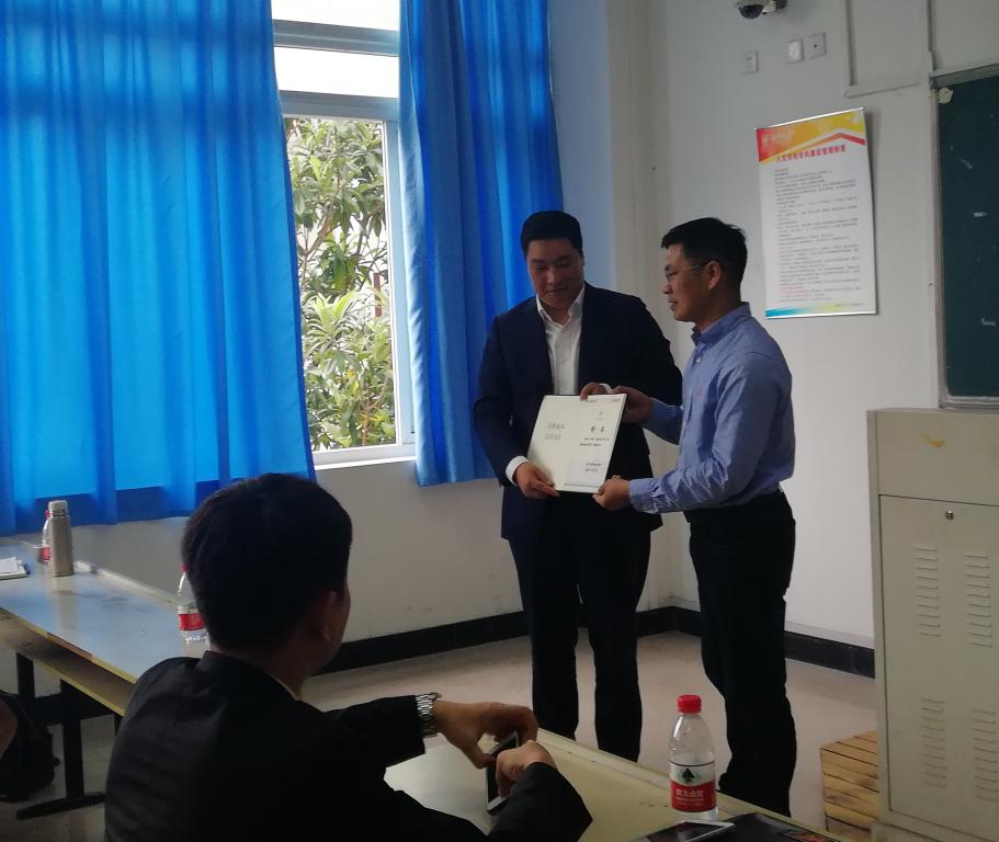 刘建国副院长首先致辞,欢迎人民电器集团带来的“一带一路”示范性工程案例分享,并鼓励学生主动对接外向型企业的人才需求。刘建国副院长还向主讲人,即乐清市进出口企业联合会会长,人民电器集团浙江进出口有限公司总经理叶向宇先生颁发了校外实习指导老师聘书。