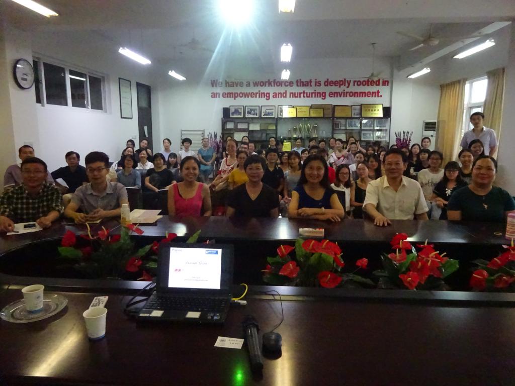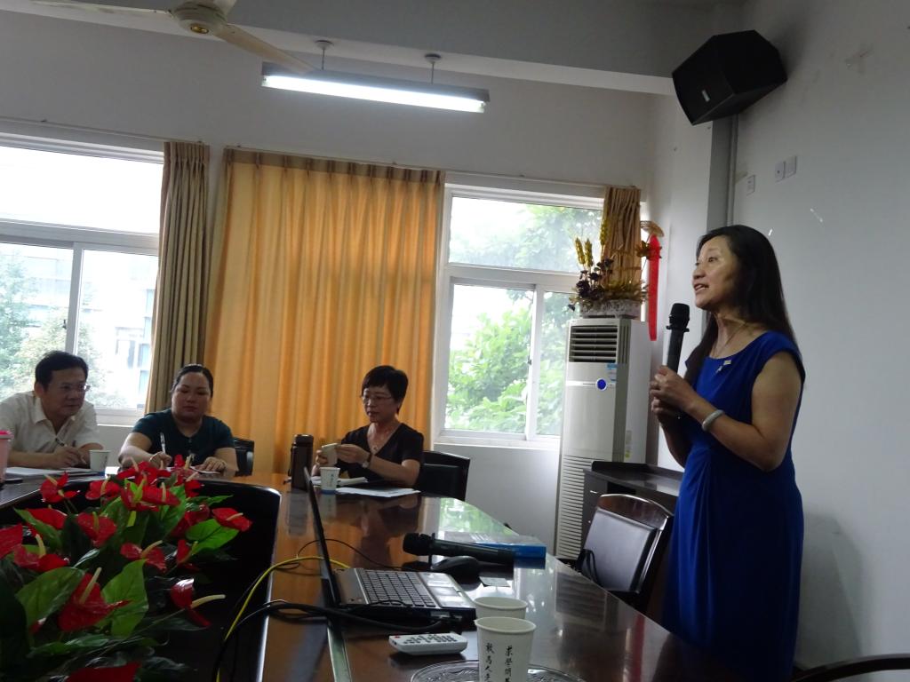 2018年7月3日周二下午,2138cn太阳集团古天乐外语系隆重邀请到美国西雅图大学终身教授、前任TESOL国际协会主席孙以琳教授来2138cn太阳集团古天乐讲座。本次讲座的主题是“Glocalisation——Think global, Act local”。讲座由朱晓申副院长主持,参会的嘉宾有2138cn太阳集团古天乐毛继光副院长及各位系主任、外语系的全体教师和在读研究生。
