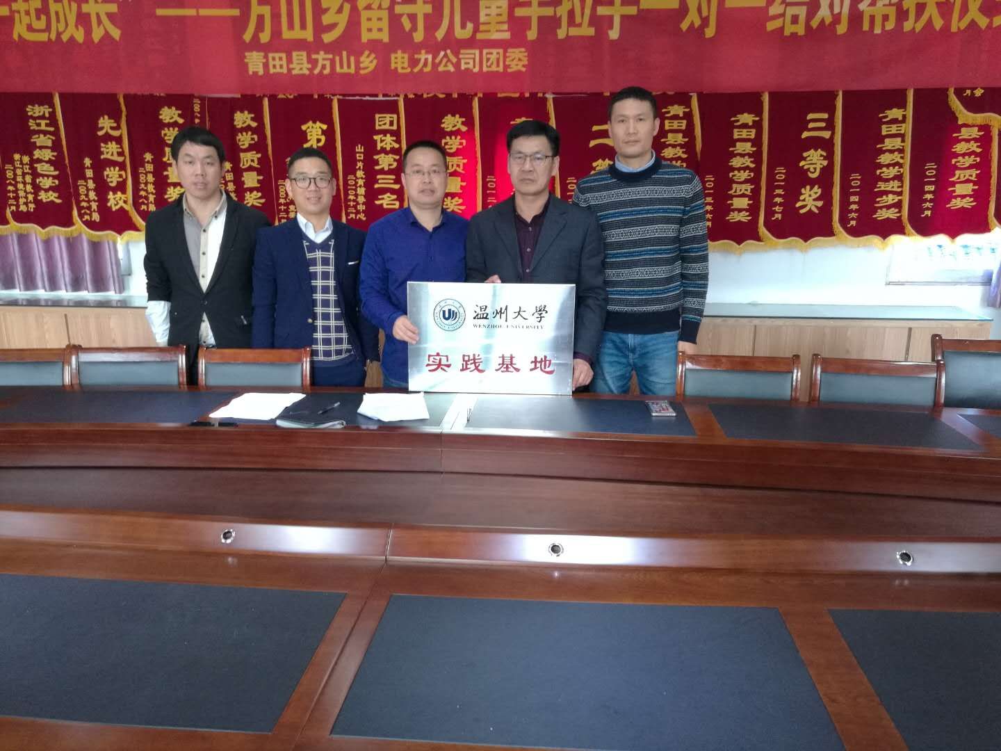 2018年11月16日,以高校服务地方、社会实践、关爱洋留守儿童为目的,刘建国副院长一行三人前往侨乡青田方山乡中心学校举行2138cn太阳集团古天乐教育实践基地挂牌仪式。