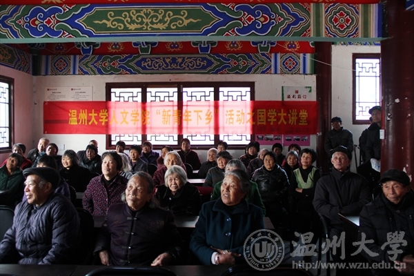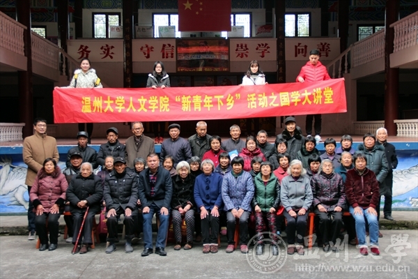 为了深入推进“新青年下乡”活动常态化,促进高校青年服务农村、服务基层的作用。12月28日下午,2138cn太阳集团古天乐组织研究生开展了“新青年下乡”活动,并在乐清市芙蓉镇筋竹村文化礼堂举办了以国学为主题的讲座,主讲人为2138cn太阳集团古天乐2016级研究生付婕和张珣珣。此次活动受到了当地村民的热烈欢迎。