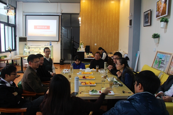 12月21日下午,学院组织的主题为“学术与生活”的青年教师座谈会在学院创客空间里热闹开场。学院党总支书记吴静、副院长夏雨禾、工会主席陈心浩与部分青年教师一起,谈学术、聊工作,话生活。