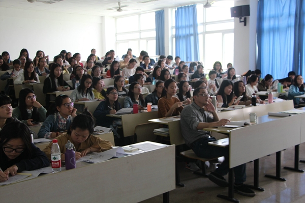 随后叶老师针对13中本学生即将面临教师资格证面试考试介绍了自己的经验看法。首先,教学设计在选择片段时要选择最有特色,最易出彩的片段。其次在教学设计时,要贴近学生实际,要充分调动学生兴趣。还有在设计时要尽可能考虑多种情况。这些经验为13中本学生的备考国考提供了莫大的帮助。
