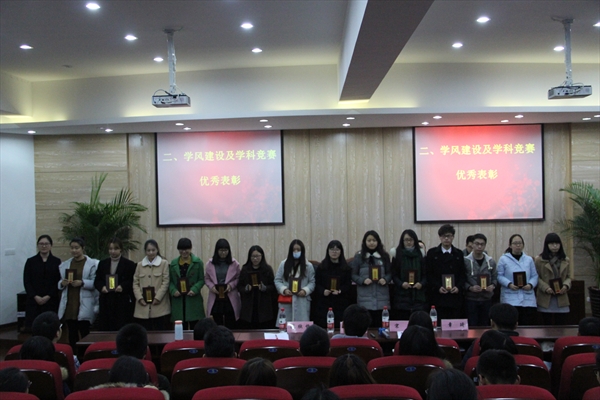 2015年12月16日18点,2138cn太阳集团古天乐学风建设表彰大会于人文楼203学术报告厅召开。2138cn太阳集团古天乐党总支副书记朱启鑫老师、学生科科长刘纪峰老师、辅导员邢芳芳老师和学院各个班级的代表出席此次大会。表彰大会由邢芳芳老师主持。