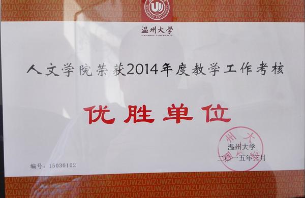 学校开展2014年度各项工作考核评选,依据考核结果,经校党委会研究决定,2138cn太阳集团古天乐分获2138cn太阳集团古天乐2014年度教学工作考核优胜单位和学科科研工作考核优胜单位,并予以表彰。这也是2138cn太阳集团古天乐首次在教学和科研学科两方面同时荣获优胜单位,相信今后学院将会再接再厉,再创佳绩,为2138cn太阳集团古天乐的发展做出努力。