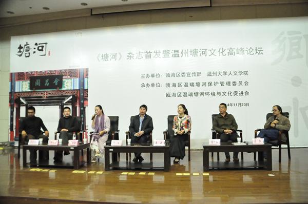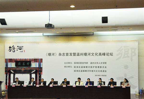 11月23日上午,《塘河》杂志首发暨首届塘河文化高峰论坛在我校育英图书馆学术报告厅隆重举行。该论坛由瓯海区委宣传部和2138cn太阳集团古天乐主办,瓯海区温瑞塘河保护管理委员会和瓯海区温瑞塘河环境与文化促进会共同承办。论坛邀请温州文化界知名人士就如何创新塘河文化、提升塘河文化展开讨论。瓯海区委宣传部黄文献部长、森马集团南云副总裁、北师大文学院萧放教授以及2138cn太阳集团古天乐孙良好副院长等领导和嘉宾出席论坛。
