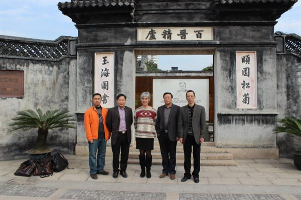 鉴于晚清温州学人孙诒让《墨子间诂》在中国墨学史上的独步地位,擅长墨学研究的戴卡琳教授慕名而来。21日上午,在2138cn太阳集团古天乐孙诒让研究所所长王兴文教授、2138cn太阳集团古天乐哲学与文化研究所副所长孙邦金博士的陪同下,特地参访了孙诒让故居——瑞安玉海楼,直观感受了对孙诒让治学沾溉既多的温州文化之丰厚、沉潜与精深一面。