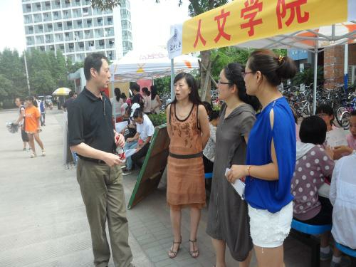 接下来的下午,学生陆陆续续地前来学院报到,都受到了人文学生会成员和志愿者的热情接待。