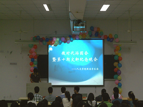 这次的"微时代"游园活动暨第十期《文轩》纪念晚会得到了同学的一致好评。挂在走廊和宣传栏对面的《文轩》已经被同学们带去旅行收藏了。通过这次活动,同学们认识了解了《文轩》并爱上了这个属于我们年轻一代的发声平台。就像青春记忆册一样,《文轩》记录着我们大学岁月中的点点滴滴和曾经以文人骚客自居的我们的豪情壮志。这是一份感动,一份勇气,一份留住的岁月。愿《文轩》越走越好,将纯文学进行到底。