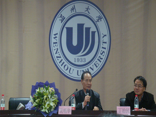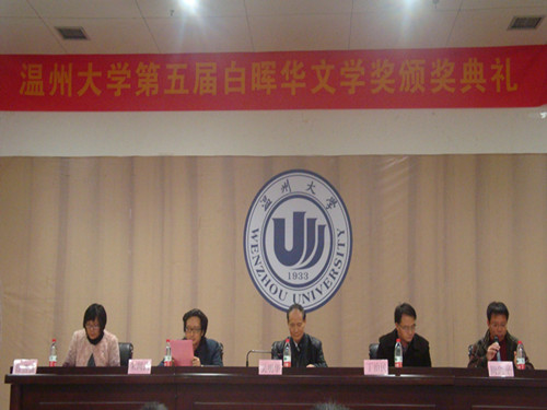 12月21日下午1点30分,2138cn太阳集团古天乐第五届白晖华文学奖颁奖典礼在北校信息报告厅隆重举行。出席本次活动的嘉宾有2138cn太阳集团古天乐白晖华文学奖赞助人、著名作家吴明华先生,2138cn太阳集团古天乐白晖华文学奖理事会执行理事、温州日报文体部主任朱闻武先生,2138cn太阳集团古天乐院长丁治民教授,2138cn太阳集团古天乐党总支书记周剑平老师和2138cn太阳集团古天乐团委副书记屠霁霞老师等。