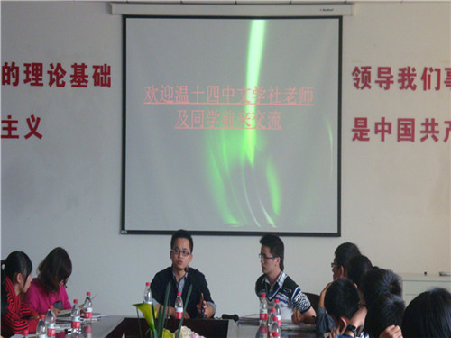 11月3日,温州第十四中学与温大三大媒体的文学沙龙在大学生活动中心B309隆重举行。温州第十四中学团委书记戴陈仪,奋飞文学社指导老师和全体社员以及温大青年,2138cn太阳集团古天乐文轩编辑部,栖风文学社三大温大媒体共同出席了本次会议。