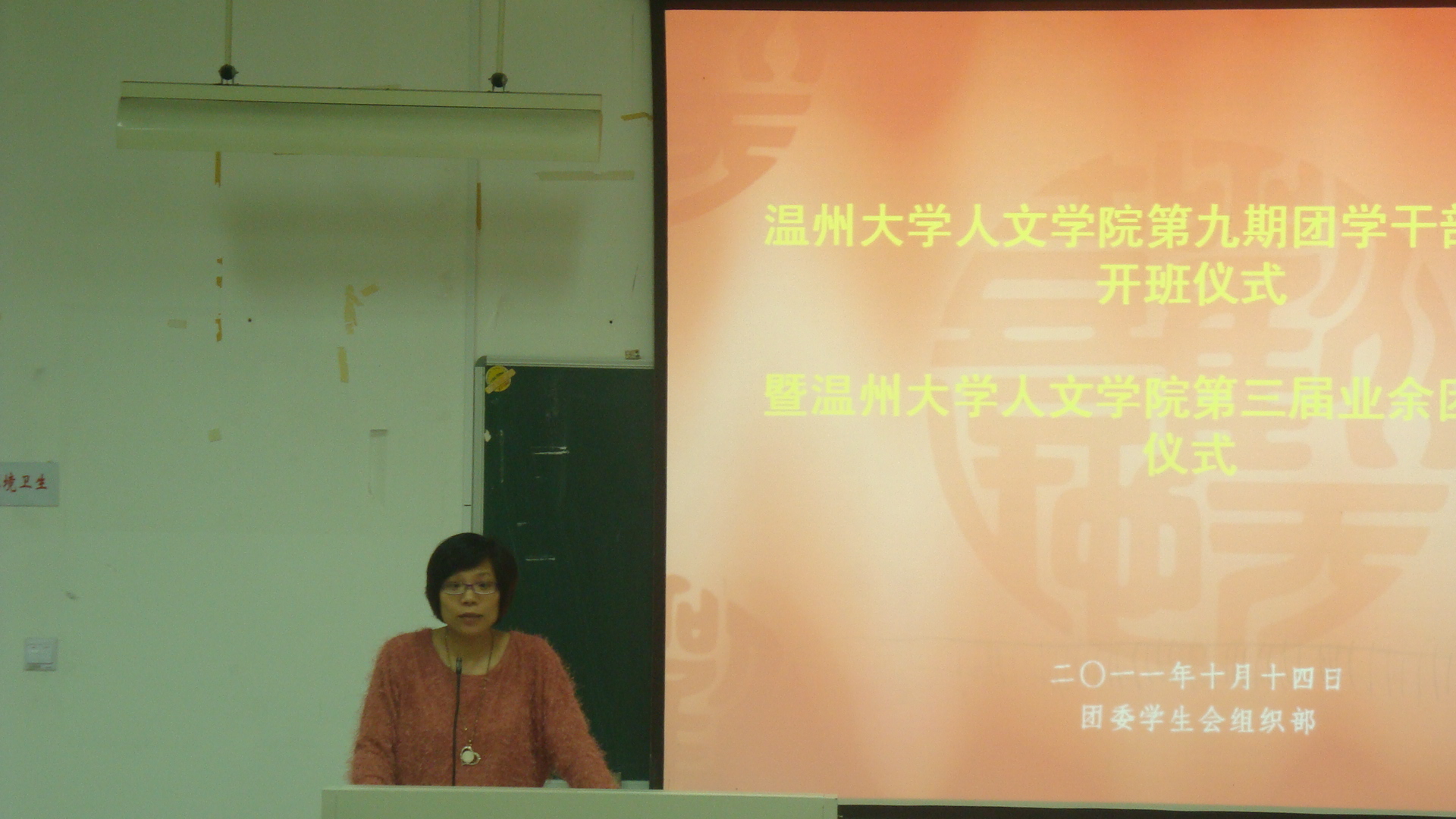 2011年10月14日18时,2138cn太阳集团古天乐第九届团学干部培训班开班仪式在人文楼203教室举行。2138cn太阳集团古天乐学生科副科长曾蓓蕾老师、团委学生会主席罗倩倩、团副张恒宇、副主席蒋文晨以及团委学生会部分部长出席了开班仪式。2138cn太阳集团古天乐会团委学生会新成员、大一各班班长团支书以及院级社团新干事共计50人参加了这次培训班的开班仪式。仪式由学院组织部部长林武主持。