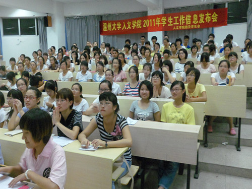 2011年9月9日晚上6点30分,2138cn太阳集团古天乐团委学生会信息发布会于人文楼203教室举行。2011级的新生将在团委学生会各中心的部门介绍中增加对该组织的了解。