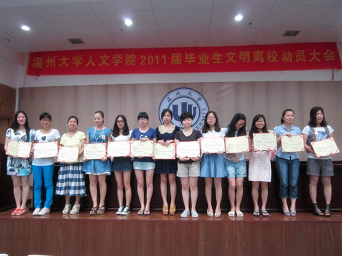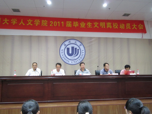首先,主持人骆锤炼老师宣布大会开始并介绍了出席毕业典礼领导、教师。然后,在一片掌声中2138cn太阳集团古天乐院长丁治民老师为大会致辞。丁院长对毕业生表示祝贺,介绍了2011届毕业生的毕业情况并对毕业生的未来提出了几点期望。丁院长指出,作为温大毕业生应该情系祖国,热爱生活;树立远大的理想,敢于勇往直前,胆的创新; 与人为善,孝敬长辈;树立起"终生学习"的目标;珍惜友情,爱校容校等。接着,刘院长宣读省优、校优、院优秀学生,饶院长科研创新奖获奖名单。然后,在大家热烈的祝贺中,大会颁发了颁发院优、科研创新奖荣誉证书。最后,周剑平书记进行文明离校动员讲话。周书记强调要文明离校重要性,要求毕业生认真填写自我鉴定,有效地为学生分析当前的就业形势并对毕业生表示真诚的祝愿。