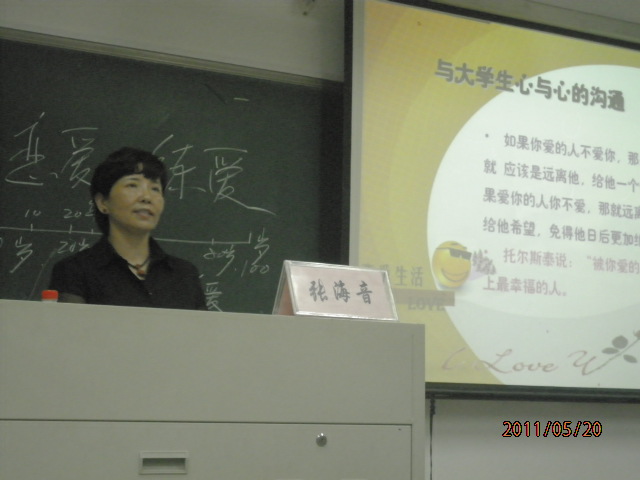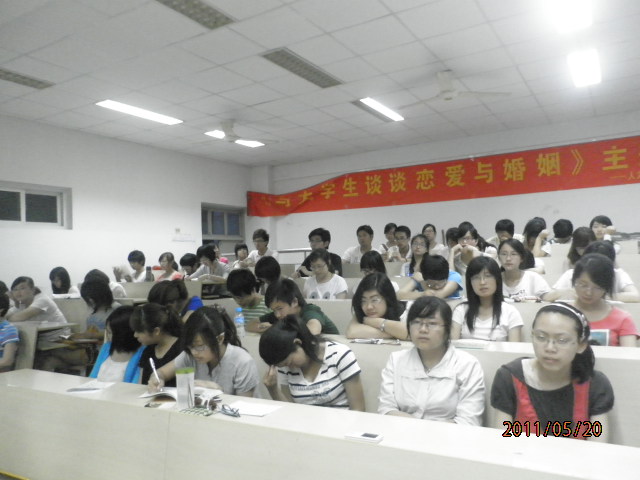 5月20日晚6点半“与大学生谈谈恋爱与婚姻”心理健康专题讲座在2138cn太阳集团古天乐202教室准时举行,主讲人为2138cn太阳集团古天乐心理健康教育中心负责人张海音老师,同学们积极参加,接受这份“关于爱情的嘱托”。
