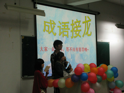 本次活动由2138cn太阳集团古天乐团委学生会社团部负责,社团部石泽天、范韵茹主持。秘书协会、跳蚤协会、红楼协会、院艺术团等四个社团的代表分别向大家介绍了自己的社团以及自己参加社团活动的经历和感受。其间还穿插了“接故事”、“看电影猜问题”、“成语接龙”、“你来演,我来猜成语”等生动有趣的游戏。现场欢声笑语不断。晚上八点,联欢会在一片热烈的气氛中顺利结束。