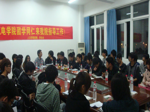 3月20日晚6点30分,在北校人文楼213室举行了2138cn太阳集团古天乐和机电学院团委学生会的工作交流会。两个学院各个部门的部长及干事出席了此次交流会。