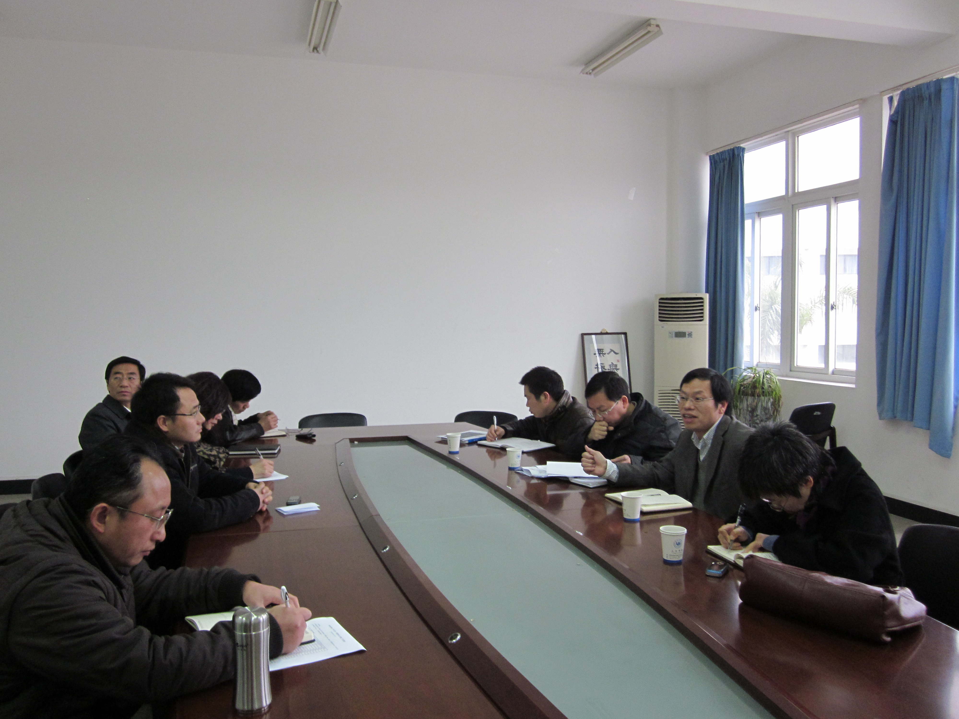2011年3月3日下午,叶世祥校长率教务处处长施晓秋等一行4人莅临2138cn太阳集团古天乐,调研并指导2138cn太阳集团古天乐公共课教学工作。院长丁治民,副院长刘建国、饶道庆,教学科科长杨秀华及部分公共课任课教师参加了会议。