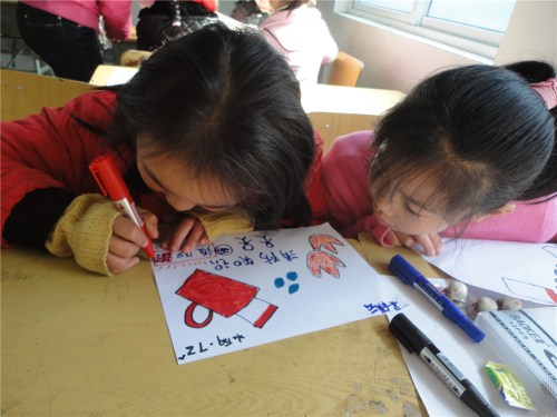 活动在早上八点半准时开始。首先,志愿者通过消防知识PPT课件,向小学生们进行消防安全知识内容的讲解。志愿者们积极活跃气氛,达到了预期的宣传效果。活动中,小学生们踊跃抢答志愿者们提出的消防知识问题。接着负责人虞姣飞向小学生们更深一步地介绍了消防知识及消防安全防护措施,并在志愿者的协助下,教小朋友们认识相关消防的标志,生动形象地向他们展示如何使用灭火器。最后便是动手环节,志愿者与小朋友们共同绘制了海报并且拍照留念。这些海报及手抄报将在下周三的时候在校园内展出,从而向更多的小朋友传递消防安全信息。