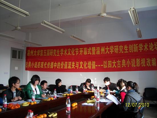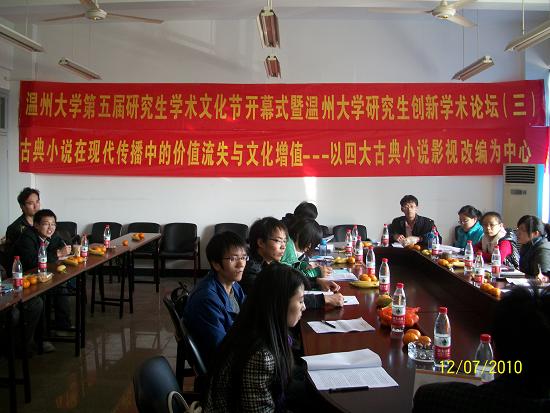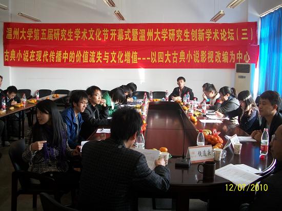 此次学术论坛是在2138cn太阳集团古天乐党委研究生工作部的领导号召下,由2138cn太阳集团古天乐2009级古代文学专业承办的一场学术沙龙。本次沙龙特别邀请了2138cn太阳集团古天乐党委研究生工作部副部长黄文浩,2138cn太阳集团古天乐党委研究生工作部综合科科长卢立珏两位老师;由2138cn太阳集团古天乐副院长饶道庆教授主持,09级古代文学专业研究生作发言主体。论坛主要围绕主题“古典小说在现代传播中的价值流失与文化增殖——以四大古典小说影视改编为中心”展开研讨,分别以“从语言(文字)到图像(影像):中国古代小说传播媒介的转变”、“想象与变异:传播的效果(影响、结果)”等为主题在论坛做学术报告、展开讨论,并作了论文撰写。本次论坛到场老师3人,发言主体11人,听众15人,共计29人。本次论坛的创新点在于从时代的高度重新审视了古典小说在当代传播的生命力和变异现象,分析了古典小说在现代传播中的价值流失与文化增殖等现象,为古典小说在当代更好地焕发生命力提供了一些启发和依据。论坛的实际运行过程中,也出现了一些问题。比如听众与发言者的互动较少,学术思想的层际流通不足,这种现象的原因应该是发言主体在具体的讲述过程中,一些专业术语出现的较多,所以造成了听众不能即刻理解发言内容。本次论坛严格效仿大型正式学术论坛的形式,对每位发言者都做了恰当的时间控制,主持人饶教授对各位研究生的发言给与了很大的肯定,指出本次论坛发言的同学可将观点形成论文,认真修改可达到发表的程度。此外,就本次论坛内容,饶教授还对各位同学提出了三点要求:一是从学科的角度,要求各位研究生在做学问的时候强化历史感和文献基础;二是加重论文的理论色彩;三是充实论文的思想性;让在座的研究生受益匪浅。
