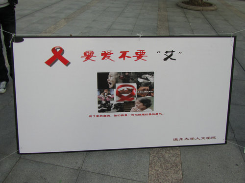 此次宣传活动主要以安放宣传KT板的形式开展,活动主要负责方将事先做好的宣传KT板在生活区C区摆出。宣传KT板共有十一块,上 面将艾滋病的基本知识、防治知识以及我国的艾滋病防治现状以文字、图片形式展出,宣传活动吸引了众多学生观看。