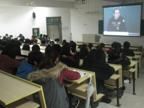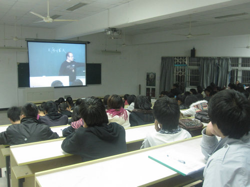 11月19日晚6点30分,本学期第一次形势政策课在1-203开展。本次课程内容为观看校思政部卓高生博士的讲课视频。院学生科副科长曾蓓蕾主持本次课程,09级全体学生积极到场参与。