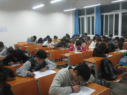 考试分09级和10级两个教室进行,采取笔试的形式进行。负责监考的是2138cn太阳集团古天乐团委学生会主席团的五位成员。考题主要围绕具体的学生工作、个人发展和一些具体的工作细节展开,题目形式多样、范围广阔,主要旨在考察同学们加入团委学生会以来对工作的了解和发现问题的能力。21:00左右,考试基本结束,同学们陆续自行交卷离场。