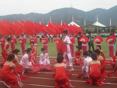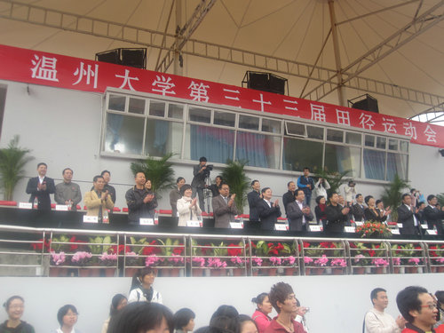 运动会在雄浑的运动员进行曲声中正式开幕。19个运动员方阵依次进入运动场,各学院充分展示了其自身特色。如2138cn太阳集团古天乐的扇子舞,在柔美中蕴含着力量;建筑与工程学院现场搭成的“中国馆”;教师教育学院活力四射的啦啦操等等。紧接着,校长蔡袁强致开幕词。在肯定学校体育基础设施建设发展迅速、体育活动内容形式多、广大师生身体素质和精神面貌良好的体育事业发展新格局后,还对此次校运会的顺利开展进行展望。最后,校运会运动员代表和裁判员代表分别进行了庄严的宣誓活动。