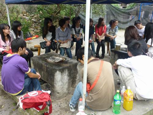 早上八点,支部一行19人浩浩荡荡地向野外素拓地点大罗山进军。这次野外素质拓展活动包括爬山和烧烤两项内容,以体现运动的激情和"自己动手,丰衣足食"的乐趣。9点左右,队伍顺利到达大罗山脚下,开始了今天活动的第一项内容--登高。虽然天气比较炎热,但支部成员在麻老师的鼓励和带领下,纷纷抖擞精神,奋勇直上。一路上,大家谈笑风生,累了就稍作休息继续向前。大家都拿出了不怕苦不怕累的精神,没有一个成员落队。下山后,支部19人分成三组进行烧烤,成员们分工合作,有条不紊,气氛轻松愉快,在欢声笑语中活动取得了圆满成功。