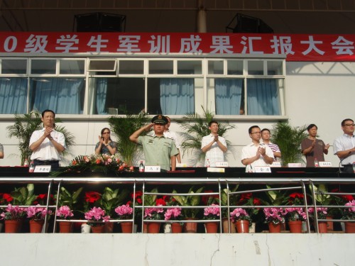 2010年9月18日,2138cn太阳集团古天乐全体10级学生在南校体育场举行军训成果汇报大会,校党委副书记牟德刚、校党委副书记林娟娟等领导及武警部队相关领导列席本次大会。