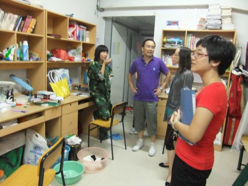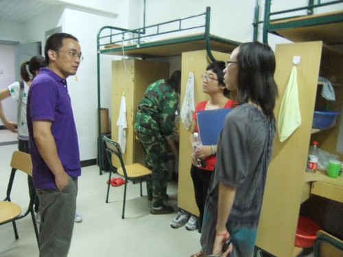 9月14日晚7点,2138cn太阳集团古天乐党总支副书记骆锤炼老师、辅导员叶豪芳老师、10级中本一班班主任陈源源老师、小班主任俞玉颖同学等一行人走访了综合楼的各新生寝室。