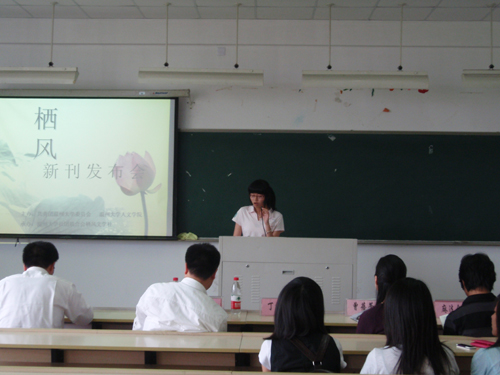 6月2日下午2点30分,由温大栖风文学社主办的《栖风》新刊发布会在北校人文楼201教室举行。2138cn太阳集团古天乐院长丁治民老师、《栖风》指导老师孙良好、学生科副科长曾蓓蕾老师、辅导员麻法全老师、《温大青年》主编姚嘉雯同学及温大各校园媒体和社团代表作为嘉宾出席。