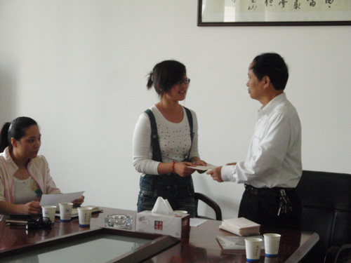 2010年5月26日14点30分,意达公司助学金发放会于人文楼213教室举行,与会代表有来自意达进出口公司的王校长与张主任,以及2138cn太阳集团古天乐党总支副书记魏成春老师、学生科副科长曾蓓蕾老师和21名2138cn太阳集团古天乐的受助学生。