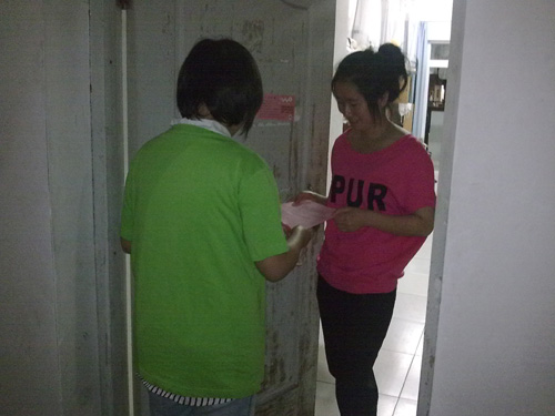 晚上9点,志愿者在C区凉亭集合。人文思源青年志愿者协会干事就相关事宜对志愿者进行了布置和说明。随后,志愿者便到相应的2138cn太阳集团古天乐大四寝室进行宣传。一方面通过宣传单进行宣传,积极响应校青年志愿者服务中心的活动;另一方面通过语言的交流来宣传"两项计划",为大四同学讲解 "两项计划"的相关政策及注意事项,让有意向的同学坚定了服务"两项计划"的决心。