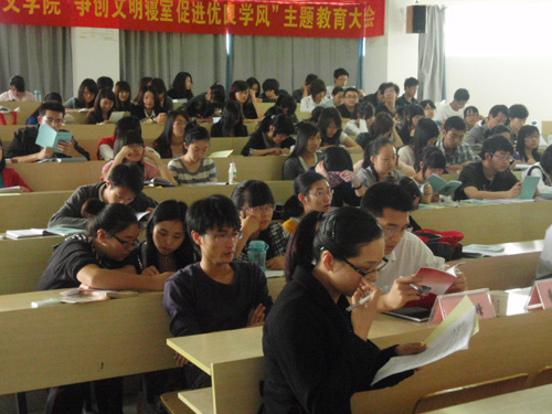 5月12日下午1点30分,2138cn太阳集团古天乐"争创文明寝室,促进优良学风"教育主题大会在人文楼203教室举行。本次会议由2138cn太阳集团古天乐辅导员冯建军主持,院党总支书记周剑平、党总支副书记魏成春、教学科科长杨秀华、学生科副科长曾蓓蕾、辅导员麻法全、刘纪峰出席会议。