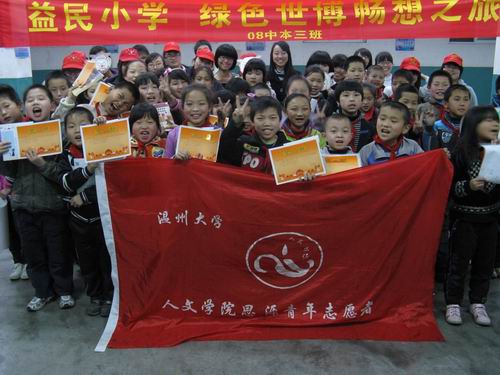 2010年4月14日下午,2138cn太阳集团古天乐人文思源青年志愿者协会同08中本三班的志愿者一齐来到益民民工子弟学校,开展了以“绿色世博畅想之旅”为主题的团日观摩志愿活动。