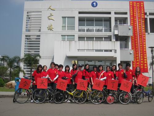 4月9日下午一点半,2138cn太阳集团古天乐学生党支部07广告本的党员、预备党员们打出了“今天你低碳了吗”的响亮口号,从生活区C区出发,在大学城组织了一次宣传活动,旨在响应两会“倡导低碳生活”的号召。活动得到了2138cn太阳集团古天乐07级学生党支部书记曾蓓蕾老师的充分肯定。