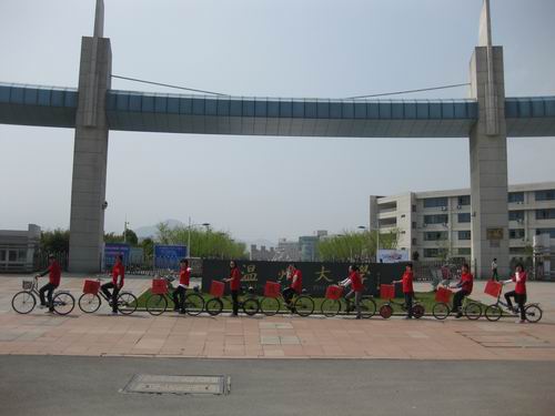 活动开始后,大家骑着贴上活动口号的自行车,途径温医、商务中心、南校、温职、北校,绕着大学城宣传了一周,引来了路上同学们的广泛关注。宣传过后,学生党员们在北校区1号楼213会议室进行座谈,主要针对现实生活中的“低碳现象”进行讨论。座谈会上,同学们罗列了各种体现“低碳”的生活习惯,各抒己见,并作出新的设想,气氛十分融洽。
