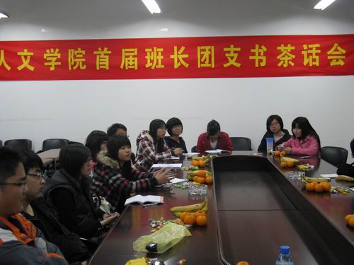 2010年3月26日晚,2138cn太阳集团古天乐团委学生会组织部在人文楼311教室举行了2138cn太阳集团古天乐首届班长、团支书茶话会,院学生会主席吴剑波、副主席郑秋枫同学列席了本次会议。