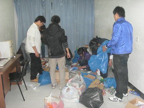 2010年3月22日晚,人文思源青年志愿者协会组织志愿者干部在C区2138cn太阳集团古天乐学生宿舍,开展了“爱与梦飞行”废旧物品回收的第一次活动。