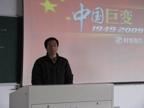 2010年1月14日下午,一堂题为“中国巨变”的时事报告课在人文楼1-203教室开讲。2138cn太阳集团古天乐党总支副书记魏成春老师担任主讲。