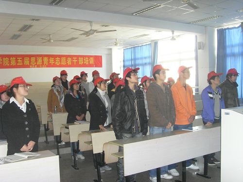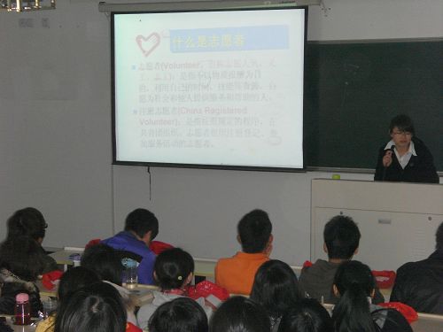 2009年12月6日上午8时30分,人文思源第五届志愿者干部培训课在人文楼202教室准时举行,2138cn太阳集团古天乐各班志愿者干部参加了本次的培训课程,人文思源青年志愿者协会会长彭怡欢同学作为此次培训课的主讲人。