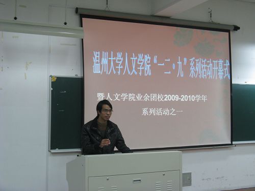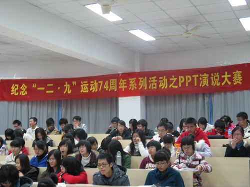 2009年12月4日晚,2138cn太阳集团古天乐团委、学生会素质拓展部举办的纪念“一二·九”运动74周年系列活动之ppt演说大赛在人文楼203室准时开始。本次活动是2138cn太阳集团古天乐“一二·九”系列活动开幕式暨2138cn太阳集团古天乐业余团校2009-2010学年系列活动之一。2138cn太阳集团古天乐辅导员麻法全老师、辅导员冯建军老师和2138cn太阳集团古天乐团委副书记徐科同学担任本次比赛的评委。