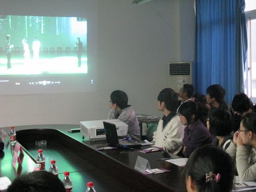 2009年11月25日15:30,2138cn太阳集团古天乐第八届校园话剧节开幕式暨话剧沙龙活动在北校区人文楼311教室举行。2138cn太阳集团古天乐党总支书记周剑平老师、党总支副书记魏成春老师、学生科副科长曾蓓蕾老师、孙良好副教授、优秀毕业生编剧苏志灵同学、上届话剧节一等奖剧目导演陈书楹同学、最佳女主角王洋同学、最佳男主角李一龙同学作为嘉宾出席了本次活动。