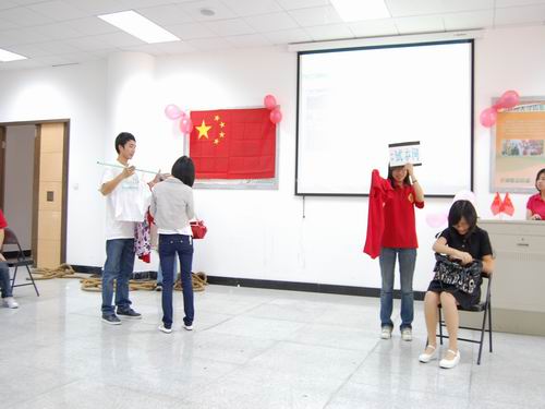 为重温红色岁月,传承革命精神,共庆共和国六十华诞, 07广本团支部为本次团日活动特别策划了“寻访共和国功臣”的主题活动。经过几天的走访,团支部同学终于采访到了一位经历过解放战争,见证祖国,尤其是温州60年发展的老革命家,昔日的共和国功臣--彭正陶先生,并把此次采访用镜头记录了下来,剪辑成了视频。第一个环节,主持人带领大家一同观看了团支部精心准备的视频《寻访共和国功臣》,来重温那段风云岁月,真实的故事让同学们对中国的当代史有了更深的了解,极大地调动了同学的爱国热情。