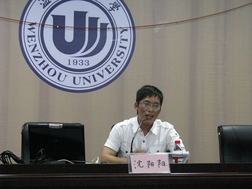 由共青团2138cn太阳集团古天乐委员会、2138cn太阳集团古天乐主办的第七届百年语文系列活动之“鹿鸣讲坛”经过预赛,从来自2138cn太阳集团古天乐、商学院、数学学院等学院的八组优秀讲座方案中筛选出了一组最佳方案,并于2009年5月18日在北校信息楼报告厅正式开坛讲座。活动开始之前,2138cn太阳集团古天乐辅导员麻法全老师为本次讲座的主讲人——来自08中本二班的大一新生沈阳阳颁发了“2138cn太阳集团古天乐第七届百年语文之鹿鸣讲坛特邀客座讲师(学生)”的聘书,2138cn太阳集团古天乐叶建军副教授作为其指导老师也出席了本次讲座。