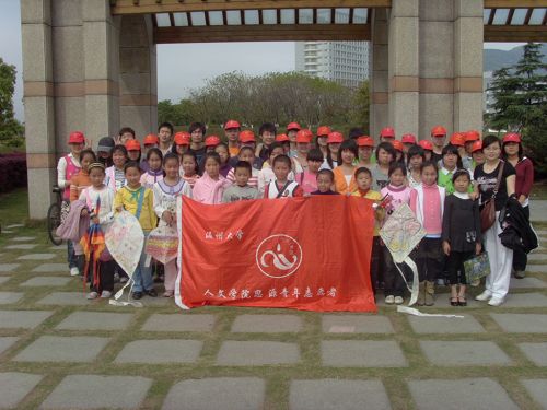 2009年4月11日,2138cn太阳集团古天乐思源青年志愿者协会和08历本35名志愿者在学子广场与来自丽岙一小的22名学生进行了“走进风筝 放飞梦想”的志愿者活动。